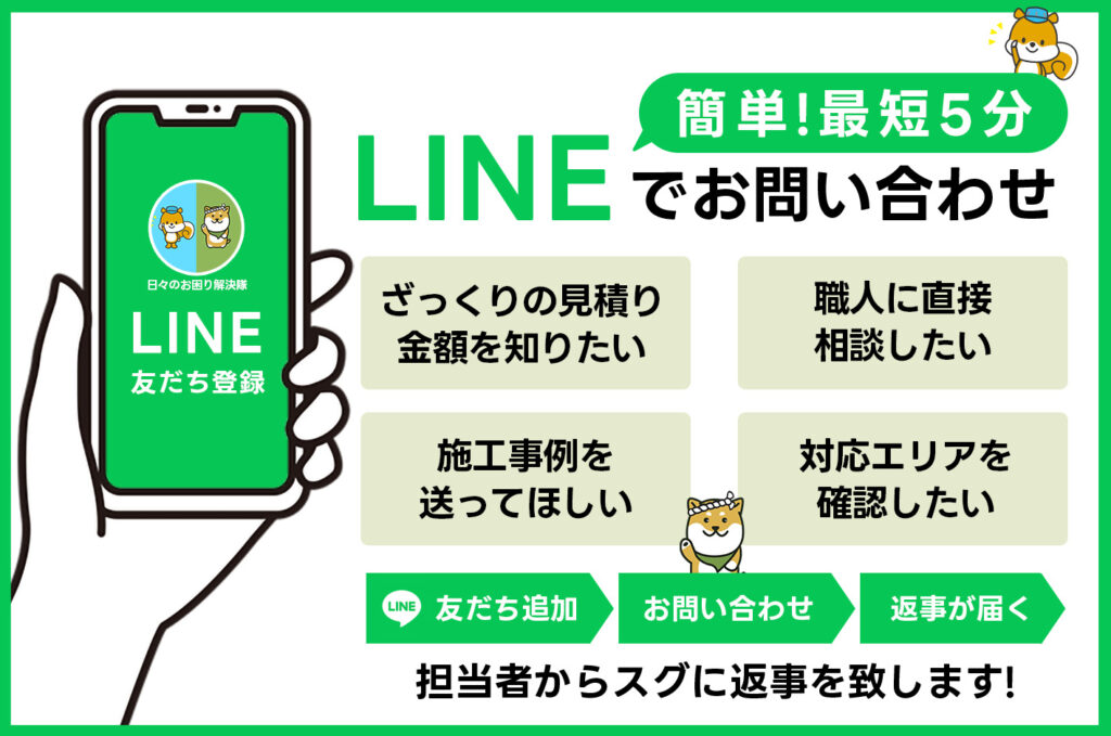 LINEから簡単に現地見積り(無料)や修理のご相談が可能です。