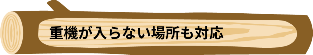 大きく育って、ほったらかしの庭木はご近所さんの敷地に侵入したり、道路まで伸びて通行人にケガをさせてしまったり、ハチやシロアリの巣になったりとトラブルを起こしてしまいます。また、伐採を検討して業者に連絡をしたが「重機が入らないので出来ない」とお断りされて困っているという方もいらっしゃいます。