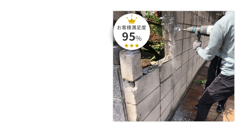 私たちは全国の職人と連携して、安全なブロック塀の解体・撤去を行っております。養生、粉じん対策、近隣への配慮、搬出・処分まで一括でお任せください!