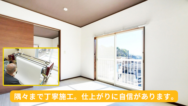 そんなときは、どうぞ私たちにお任せください。経験豊富な職人が丁寧に仕上げ、お部屋を新しい空間に生まれ変わらせます。模様替え感覚でリフレッシュしたい方も、「話だけ聞いてみたい」という方も大歓迎。お気軽にご相談ください。