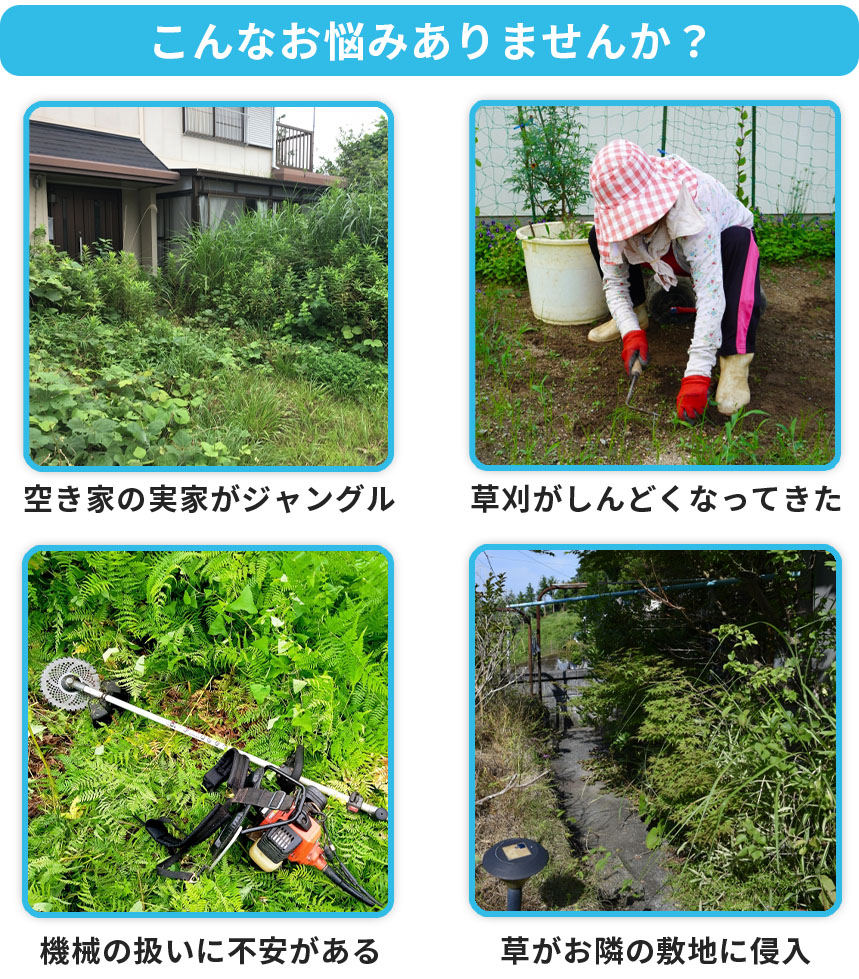 - 自分で草刈りする時間が取れない